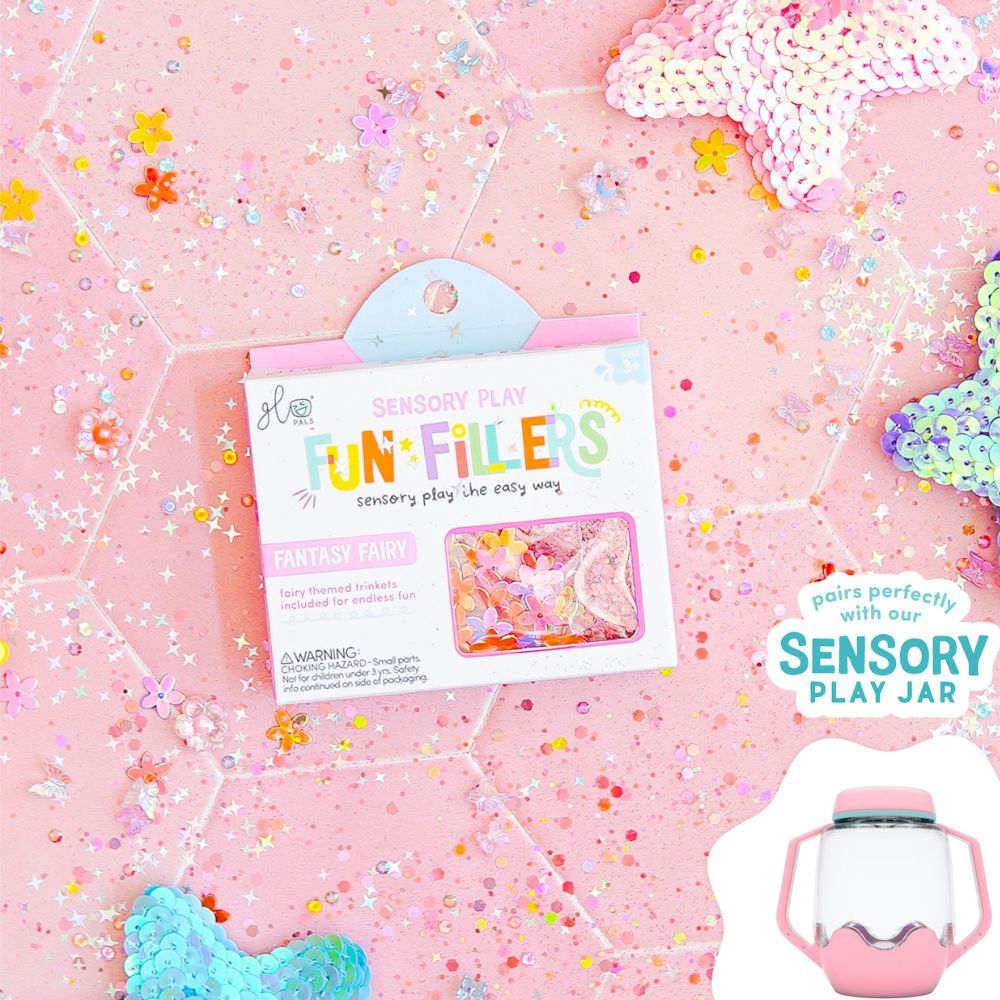 Fun Fillers to prosty, a jednocześnie niezwykle efektowny sposób na to, by zabawa sensoryczna stała się jeszcze bardziej magiczna, kreatywna i pełna odkryć. W każdym zestawie znajdziesz starannie dobrane tematyczne elementy – połyskujące brokaty, urocze figurki, mieniące się cekiny, barwniki i drobinki – które ożywią świecące słoiki Glo Pals i sprawią, że eksplorowanie kolorów, faktur i ruchu dostarczy dziecku jeszcze więcej radości.
