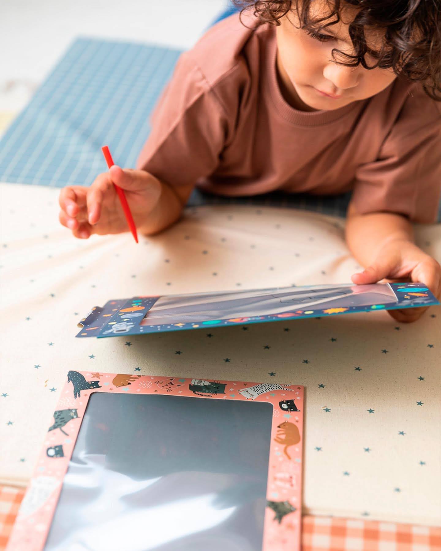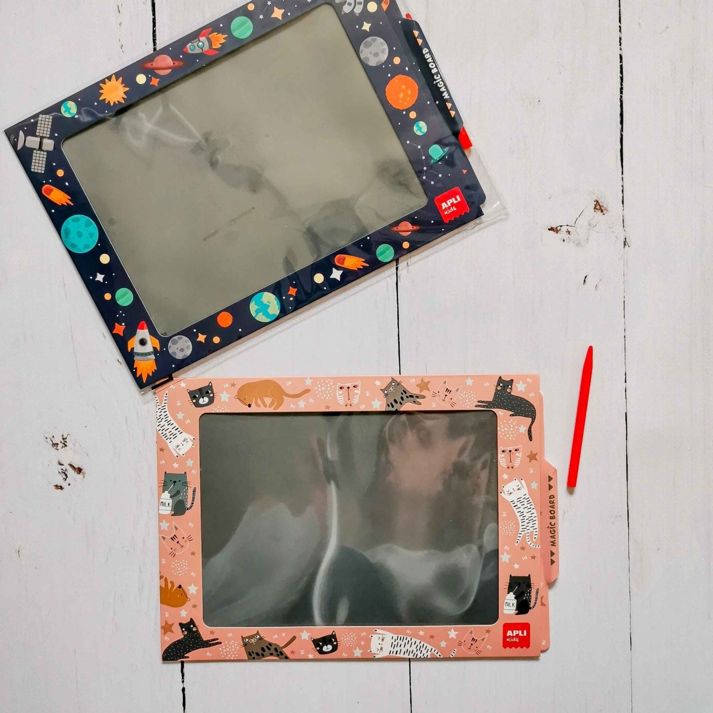 Twórz rysunki bez użycia papieru i kredek za pomocą Znikopisu Apli Kids! To proste i magiczne urządzenie pozwala na stworzenie wielu dzieł sztuki, a to wszystko dzięki załączonemu rysikowi. Po skończonej zabawie, aby wymazać obrazek wystarczy, że wysuniesz wewnętrzną cześć i wsuniesz ponownie. Znikopis jest lekki i łatwy w transporcie, dzięki czemu można zabrać go wszędzie.