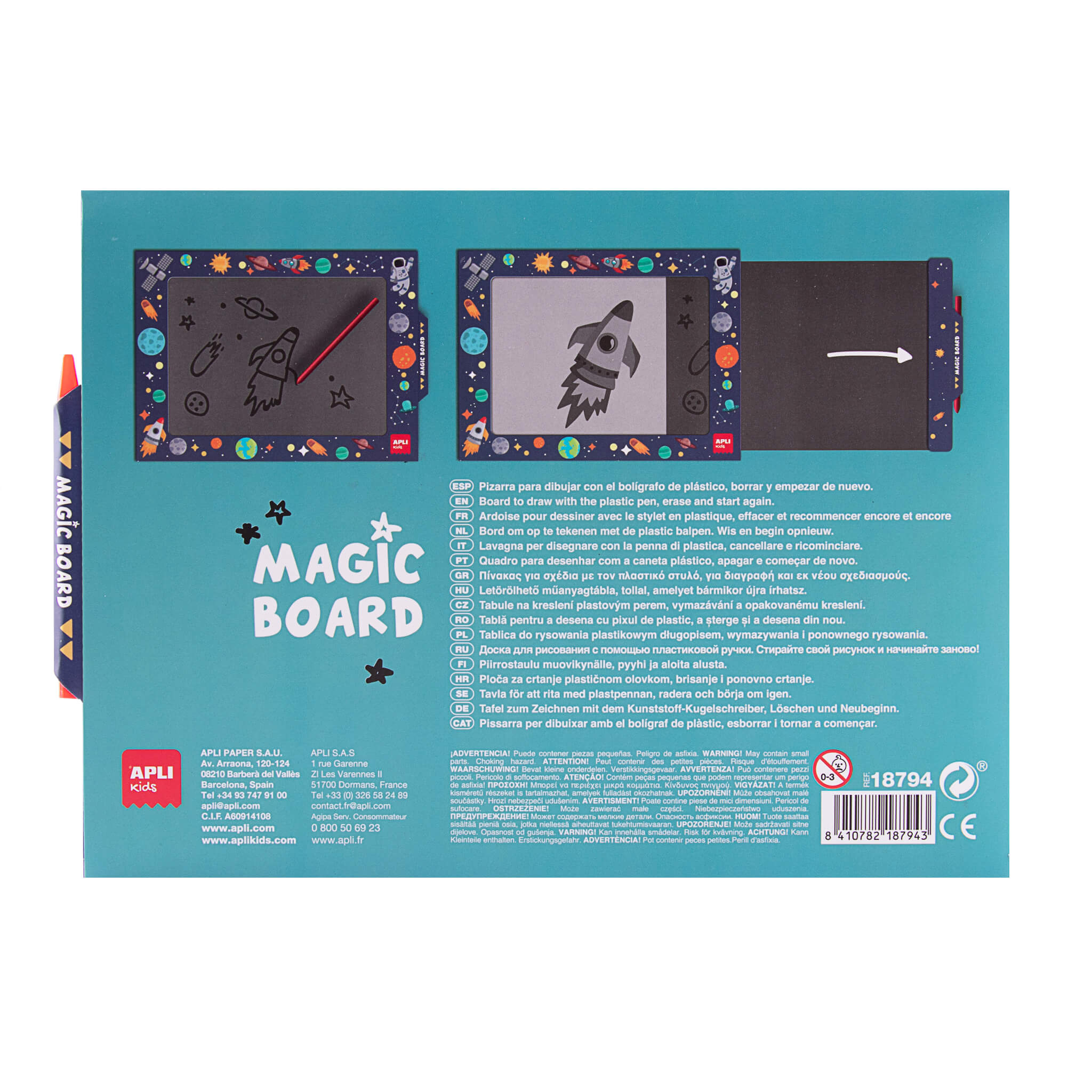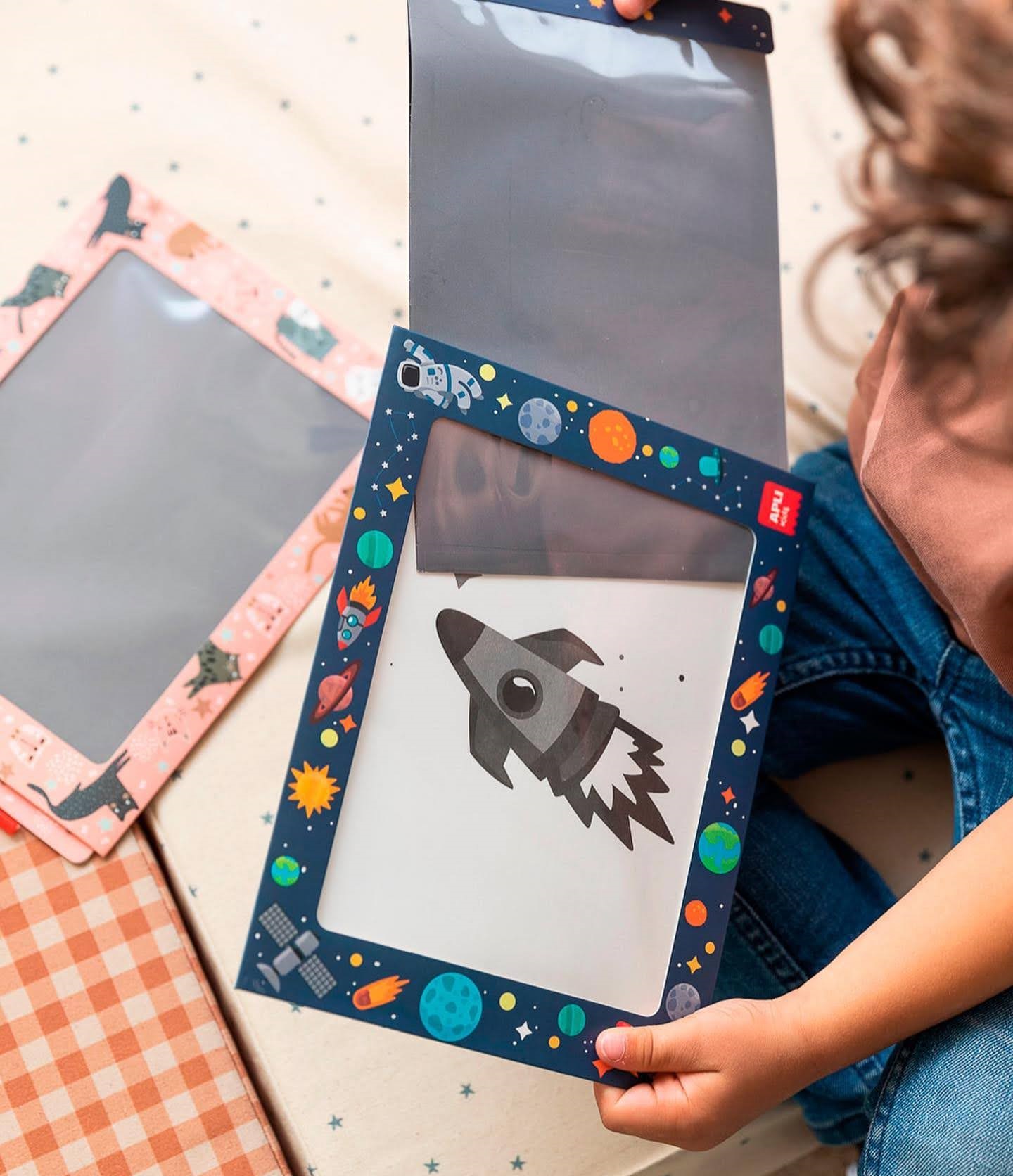 Twórz rysunki bez użycia papieru i kredek za pomocą Znikopisu Apli Kids! To proste i magiczne urządzenie pozwala na stworzenie wielu dzieł sztuki, a to wszystko dzięki załączonemu rysikowi. Po skończonej zabawie, aby wymazać obrazek wystarczy, że wysuniesz wewnętrzną cześć i wsuniesz ponownie. Znikopis jest lekki i łatwy w transporcie, dzięki czemu można zabrać go gdzie tylko zechcesz.