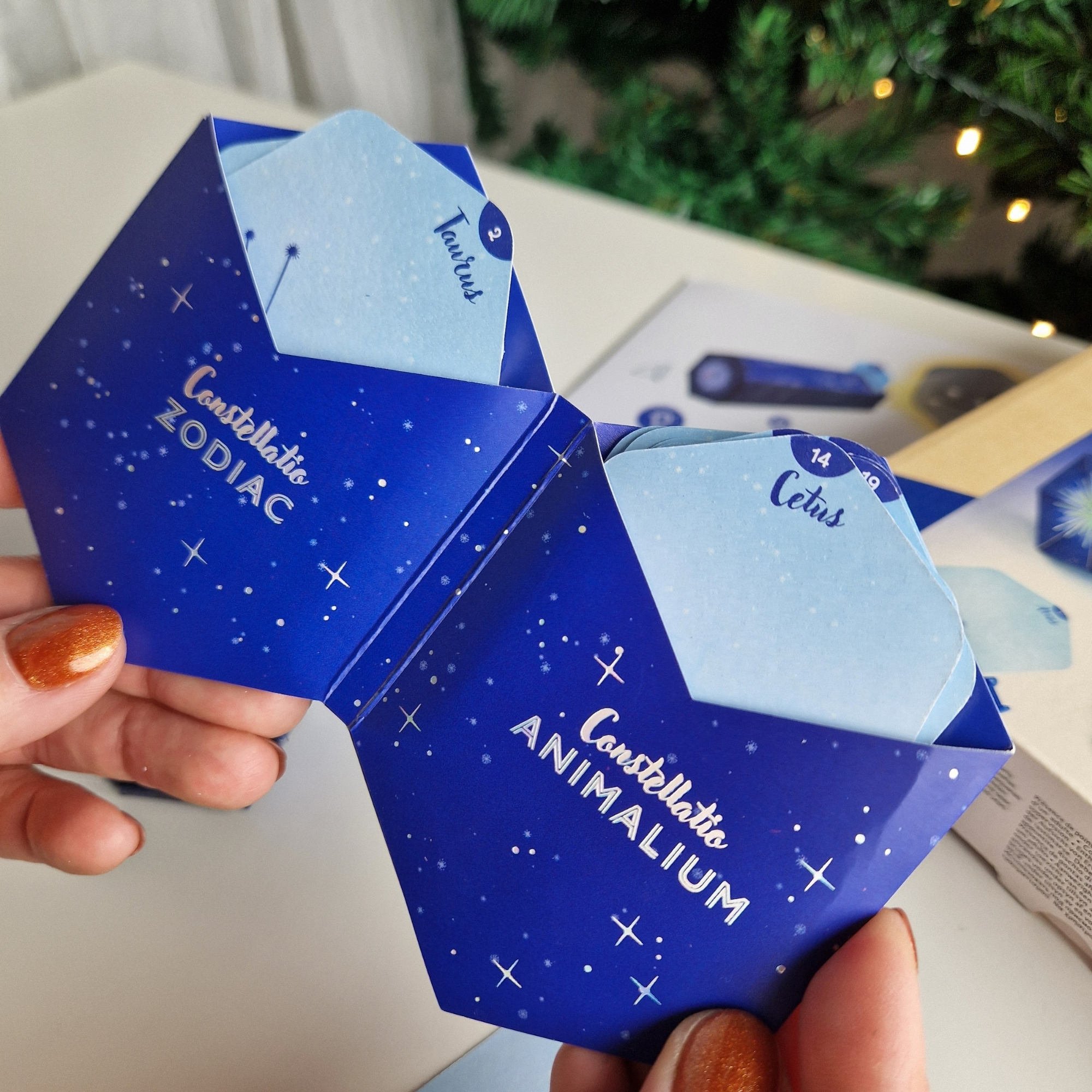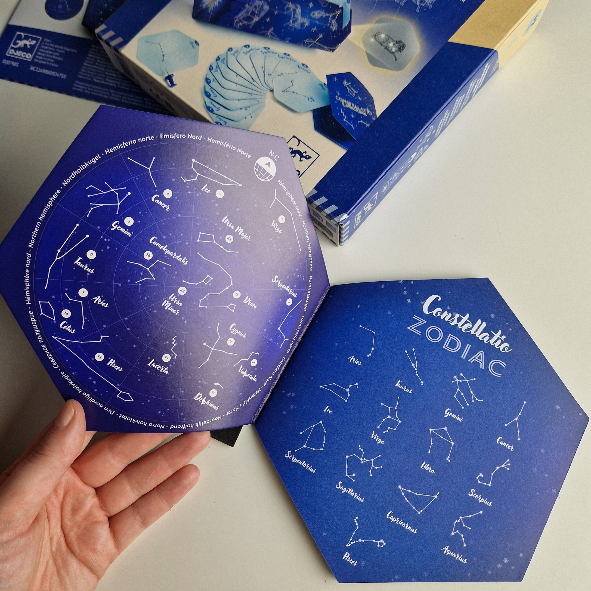 Do zestawu dołączona jest książeczka, która pozwoli umiejscowić poszczególne gwiazdozbiory na mapie nieba. Idealny pomysł na prezent dla każdego fana kosmosu.